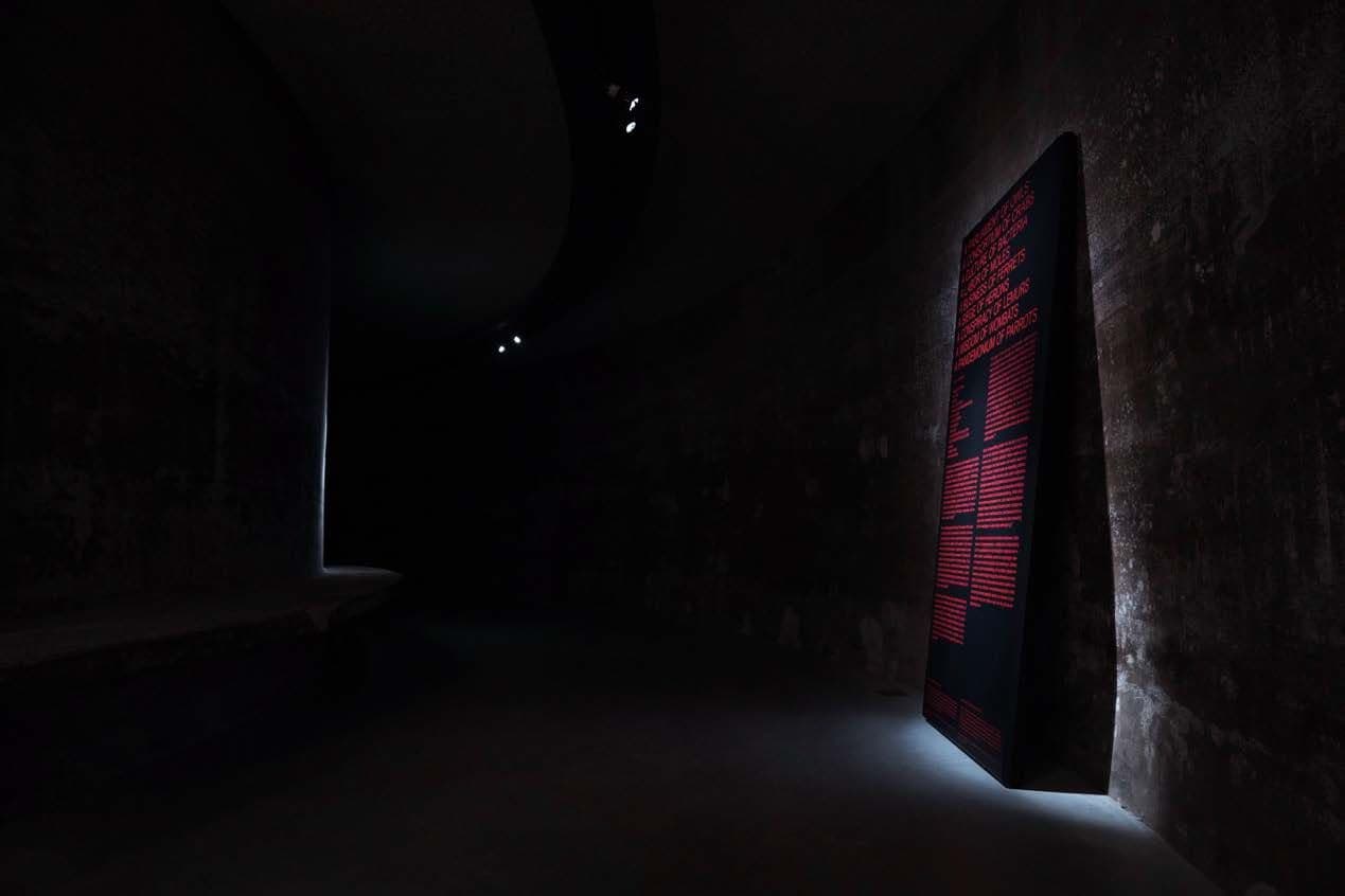the industrial era have removed, each ring of this underground structure has become a gallery. A low and persistent white noise spreads from the end of the staircase below, and after pushing aside the curtain, the need a few seconds to adapt to this dim and enclosed space. The red-letter black-background plaque casually leaning against the side records the spirit that this exhibition wants to convey.